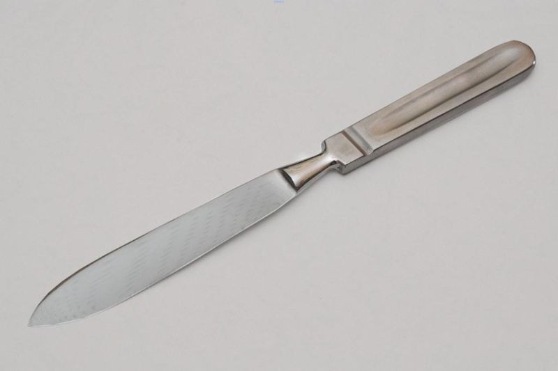 Нож ампутационный: хирургический нож с длинным лезвием и объемистой пустотелой ручкой, предназначенный для пересечения мягких тканей при ампутациях конечностей.